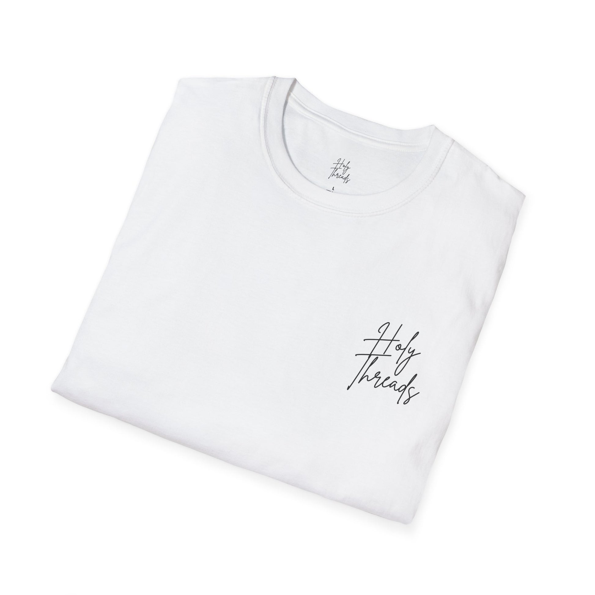 A Christian t-shirt featuring a scriptural design, perfect for those looking to express their faith in a stylish and meaningful way. This soft and durable unisex t-shirt is ideal for everyday wear and can be dressed up or down for various occasions. Suitable for adults and adheres to EU warranty and compliance standards. Made with high-quality materials for a comfortable fit and long-lasting wear.